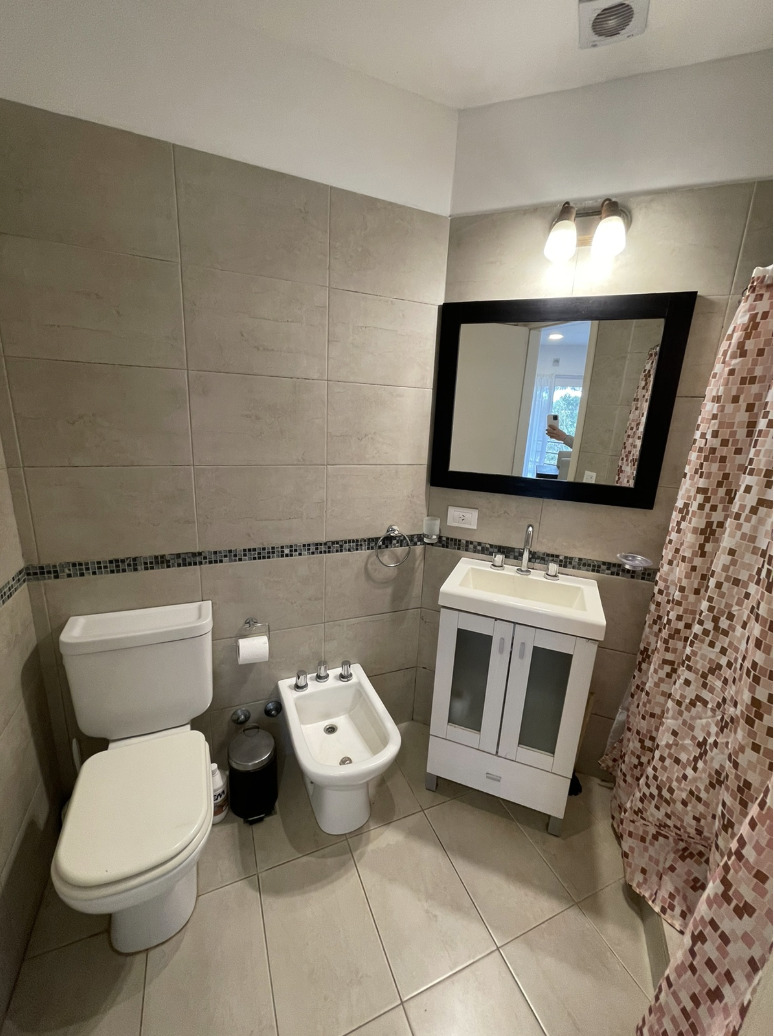Baño completo con moderno revestimiento.